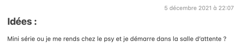 Extrait des notes de Lake, début du concept de Salle d'attente le 5 décembre 2021.